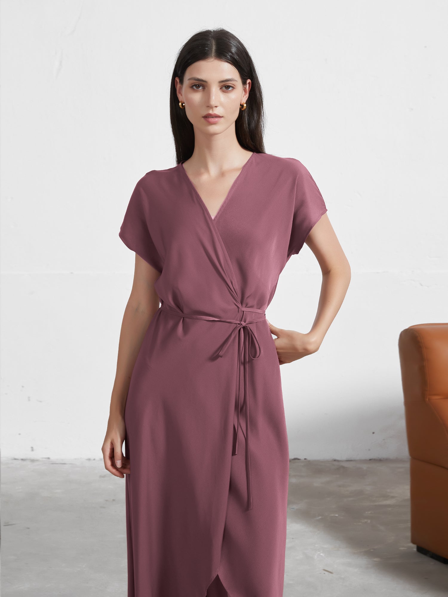 Style: V-neck Wrap Dress, Tulip Satin Midi Dress